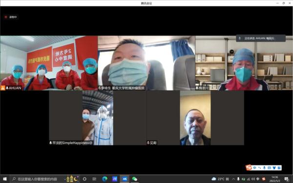 5月2日,松江區2號方艙病院,重慶市援滬醫療隊正連線后方病院專家為患者線上會診。